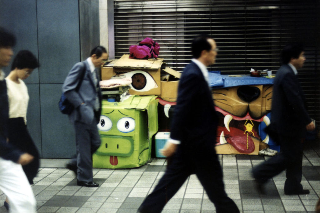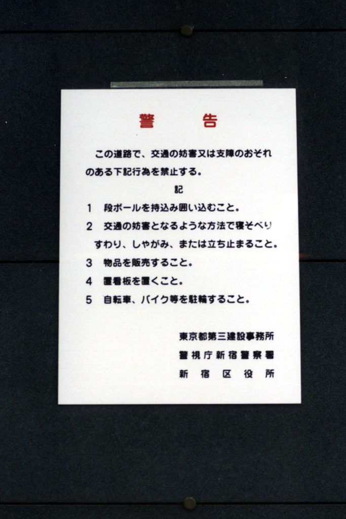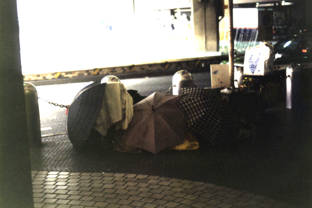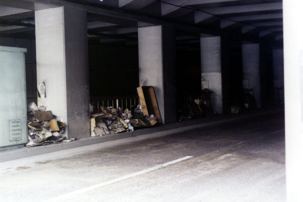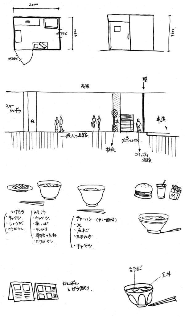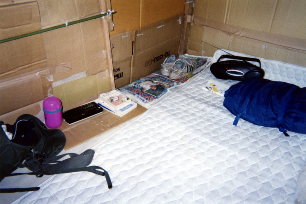 2週間の間、新宿西口でホームレスの体験リサーチをしました。驚くほど暖かい段ボールハウス、立ち上がれる高さのある内部、二階のある段ボールハウス、施錠が出来る入り口の扉、疑似家族制度による共存体制、覗き窓などのディテールやダンボールハウス専門のホームレス建築家、食料調達の方法、ドブネズミによる深夜の攻撃、薬物中毒の隣人、面倒見のよいホームレスの親方など、大変貴重な経験をしました。