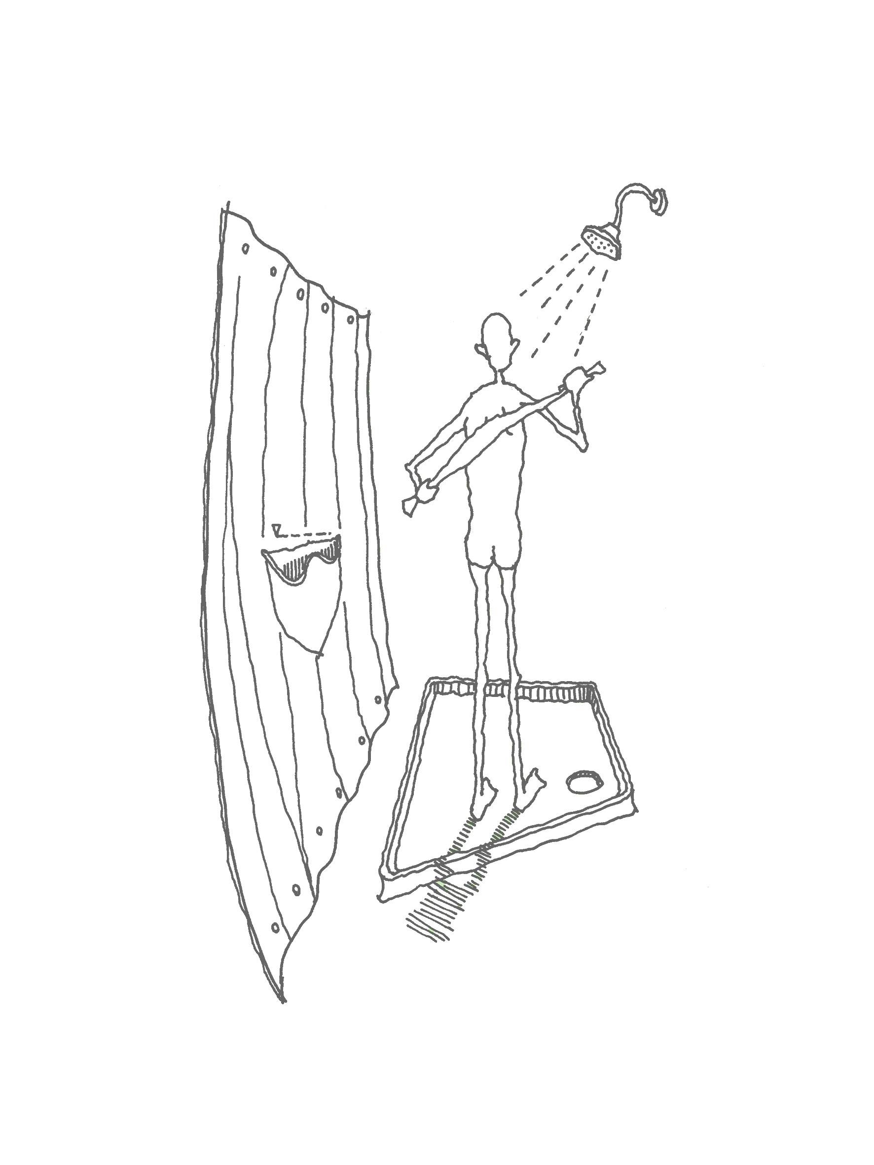P V C の 特 徴 で あ る 防 水 性 を 利 用 し た シ ャ ワ ー カ ー テ ン / レ イン コ ート の 提 案 で す 。雨 の 中 を 帰 宅 し た 時 に 濡 れ た レ イ ン コ ー ト を 乾 か す 場 所 を 探 して い る 自 分 に 気 づ き ま し た 。玄 関 ま わ り が 水 で 濡 れ て し ま う の は あ ま り 好 き で は な い の で す 。浴 室 の ど こ か に 掛 け て 乾 燥 さ せ る の が 最 適 で す 。 そんなことを解 決してくれるものがあったら快 適です。